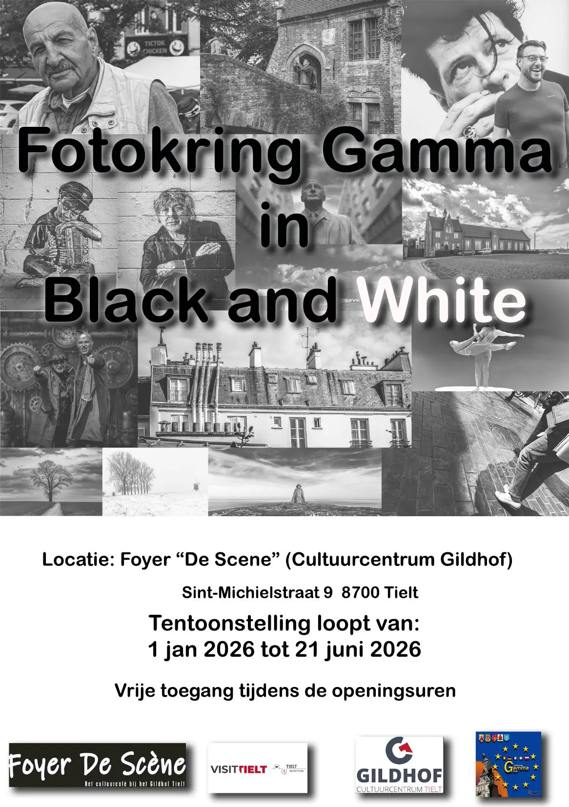 Van begin januari tot eind juni verwelkomt het Cultuurcentrum Gildhof in Tielt je in zijn foyer voor een bijzondere fototentoonstelling. Alle getoonde werken zijn in zwart-wit – een tijdloze beeldtaal waarin eenvoud en kracht samenkomen.